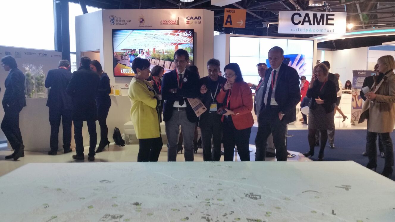 Nella giornata di apertura del 16 marzo Il Sindaco Virginio Merola, assieme all'amministratore delegato di FICO Eataly World Tiziana Primori e al presidente di CAAB e del Comitato Scientifico del Fondo Parchi Agroalimentari Italiani Andrea Segrè, hanno illustrato alla Ministra Roberta Pinotti il progetto FICO Eataly World e le principali aree in trasformazione della città, attraverso il plastico portato dalla sede dell'Urban Center Bologna allo stand bolognese di Cannes che, grazie al mapping proiettato sulla sua superficie, mostra le infrastrutture, i servizi e gli ambiti della città.